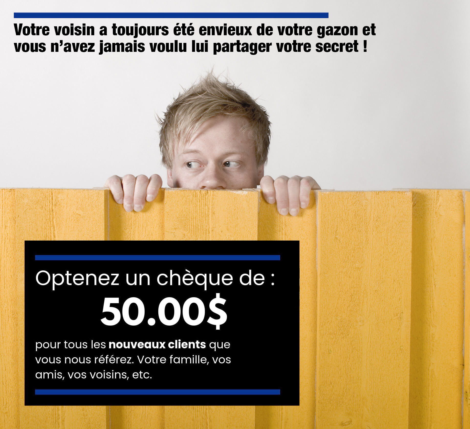 Il n’y a aucune limite au nombre de clients que vous pouvez référer. À vos téléphones : cette année, recevez une prime pour avoir le plus beau gazon de la rue!